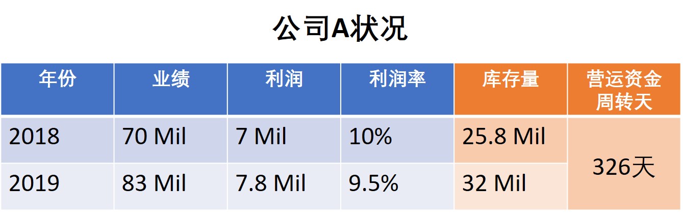 当公司A来找我时,我就利用了一个很Powerful的工具—Power Cash来计算整家公司。我看到它最烦恼和最痛的地方是在它的营运资金。它不只是库存量是39%,它整个营运资金周转天也太长了,有326天。马上报名参加我的线上课程《业绩倍增系统》线上研讨会,我会教您计算您的营运资金,再加上我会协助您找出您最痛最烦恼的地方。